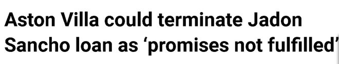 幸好,租借合同中沒有提前終止租借的條款,維拉不能把他送回卡林頓,這多少算是一種安慰。曼聯也慶幸夏季沒有貿然激活桑喬的一年優先續約條款,當時曾有傳聞說他們打算這麼做。