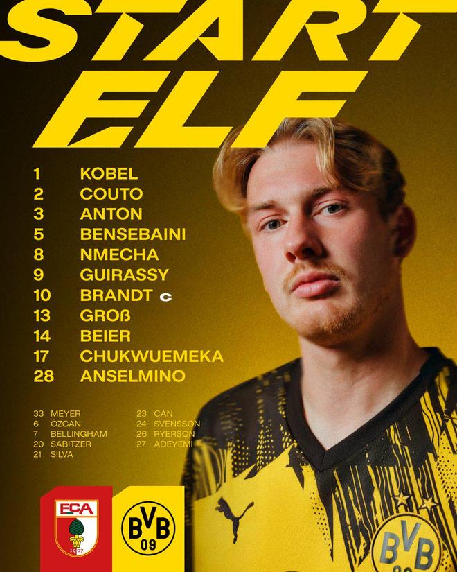 雷速体育11月1日讯 德甲第9轮,多特蒙德客场对阵奥格斯堡。赛前,多特公布本场比赛首发,施洛特贝克并未进入大名单。