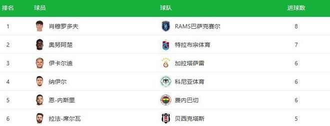 在目前在土超射手榜上領跑的球員,又是一位意甲老熟人,那就是今年夏天剛從羅馬租借到RAMS巴薩克賽爾隊的烏茲別克斯坦前鋒肖穆羅多夫,他目前已經轟入8球。而緊隨其後、虎視眈眈的,正是那位曾讓亞平寧後衛聞風喪膽的前意甲金靴、昔日藍黑軍團隊長伊卡爾迪,阿根廷前鋒目前暫列射手榜第三位,但以他的進球效率和對於土超的熟悉程度,奪回榜首隻是時間問題。
